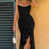 Europejska i amerykańska seksowna sukienka damska z siateczkowymi ramiączkami, plisowana, o nieregularnym kroju