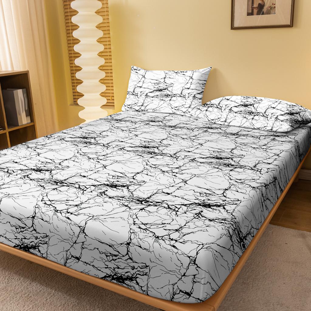 1 Prosty nowoczesny drukowany matowy prześcieradło z dopasowaną gumką, narzuta na łóżko z nadrukiem do sypialni, pościel (Z wyłączeniem poszewek na poduszki)