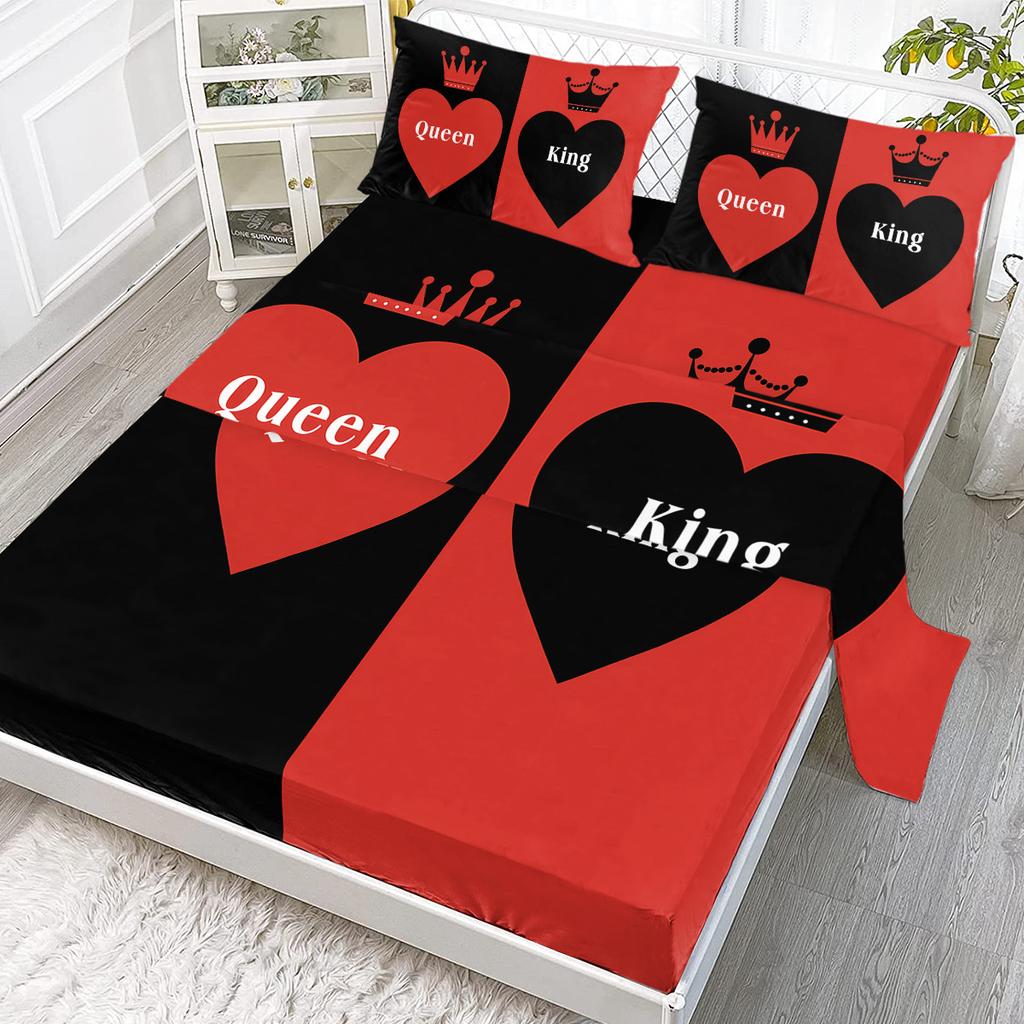 Zestaw 4-częściowy pościeli Crown Double Heart, zawierający 1 prześcieradło płaskie, 1 prześcieradło bardzo duże, 2 poszewki na poduszki (Ciepło, Para)