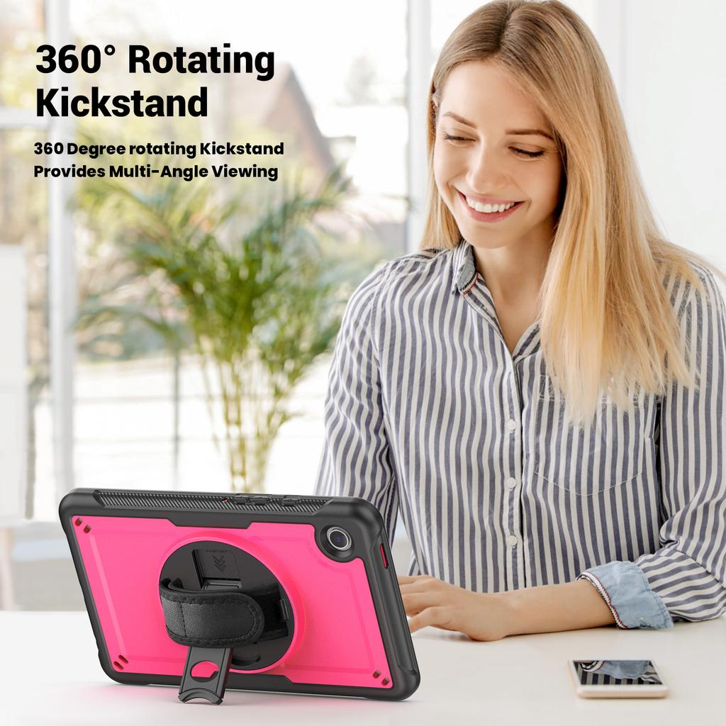 Do Samsunga Galaxy Tab A9 (SM-X110/X115/X117) Etui Obrotowa Podpórka PC+TPE Wstrząsoodporne Etui na Tablet z Paskiem na Rękę