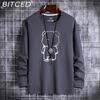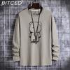 BITCED Męski Wiosenny i Jesienny Slim Trend T-shirt z Długim Rękawem Wszechstronny T-shirt Bazowy z Dekoltem O