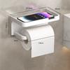 1pc No-drill Adhesive Wall Mounted Toilet Paper Holder With Storage Shelf