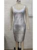 Szykowna sukienka bez rękawów z bandażami w kolorze złotym: Strój imprezowy z niskim dekoltem, opinający biodra