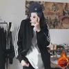 2020 Damska Wiosenno-Letnia Czarna Luźna Kurtka Baseballowa z Trzema Paskami