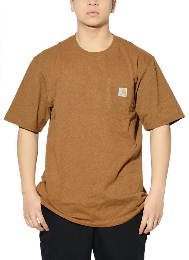 Large Short Chest L [Carhartt] Men's T-shirt, Size, Sleeve, Pocket, K87, Brown, [Item]