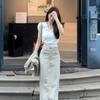 Korean Style Polo Collar T-Shirt & High-Waist Long Skirt Summer Outfit Set
