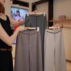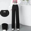 Emerald Stripe Cashmere Wide-Leg Pants for Women - 2024 Slim Fit Straight-Leg Trousers
