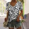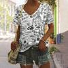 S-8XL Plus Size Vintage Black and White Letter Print Women's T-Shirts V-Neck Tops Tees Summer Casual Women's Clothing Pullover