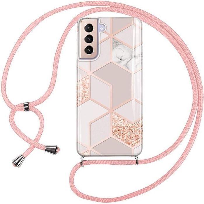 Coque de Protection - BOOLING - pour Samsung Galaxy S21 - AntiChoc - Motif Marbre Rose - Silicone