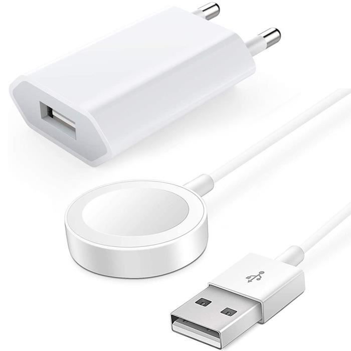 Chargeur Secteur + Câble de Charge USB pour Apple Watch - BOOLING - Blanc - Compatible avec tous les modèles