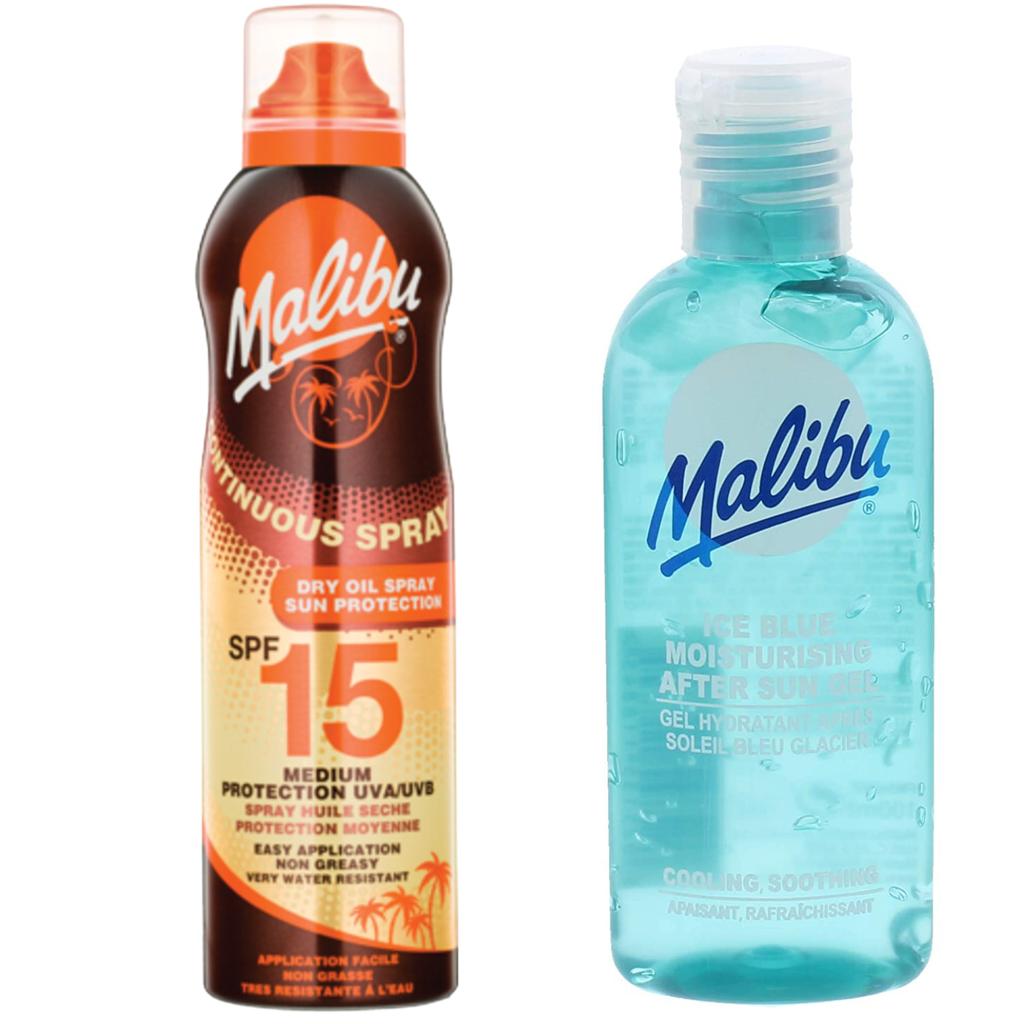 Malibu dry oil in Aerosol SPF15 175ml + gel after tanning 100ml