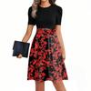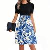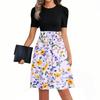 Damska modna codzienna sukienka z krótkim rękawem, okrągłym dekoltem, nadrukiem i patchworkiem