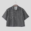 INCERUN Oversized Summer Men Lapel Neck Short Sleeve Floral Striped Casual Short Shirts