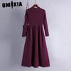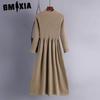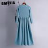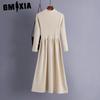 GMXIA Moda damska Wiosna Jesień Jednolity kolor Drukuj Długie rękawy, Wysoka talia Casual Sukienki
