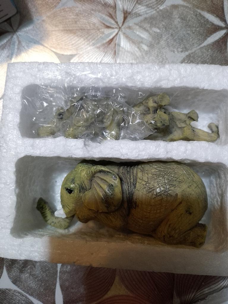 Towar otrzymany. Opakowanie naruszone. Towar otwarty. Folia bąbelkowa brak. Najważniejszy i największy słoń z 3 uszkodzony ma ułamowaną trąbę. Proszę o zwrot pieniędzy. 💰