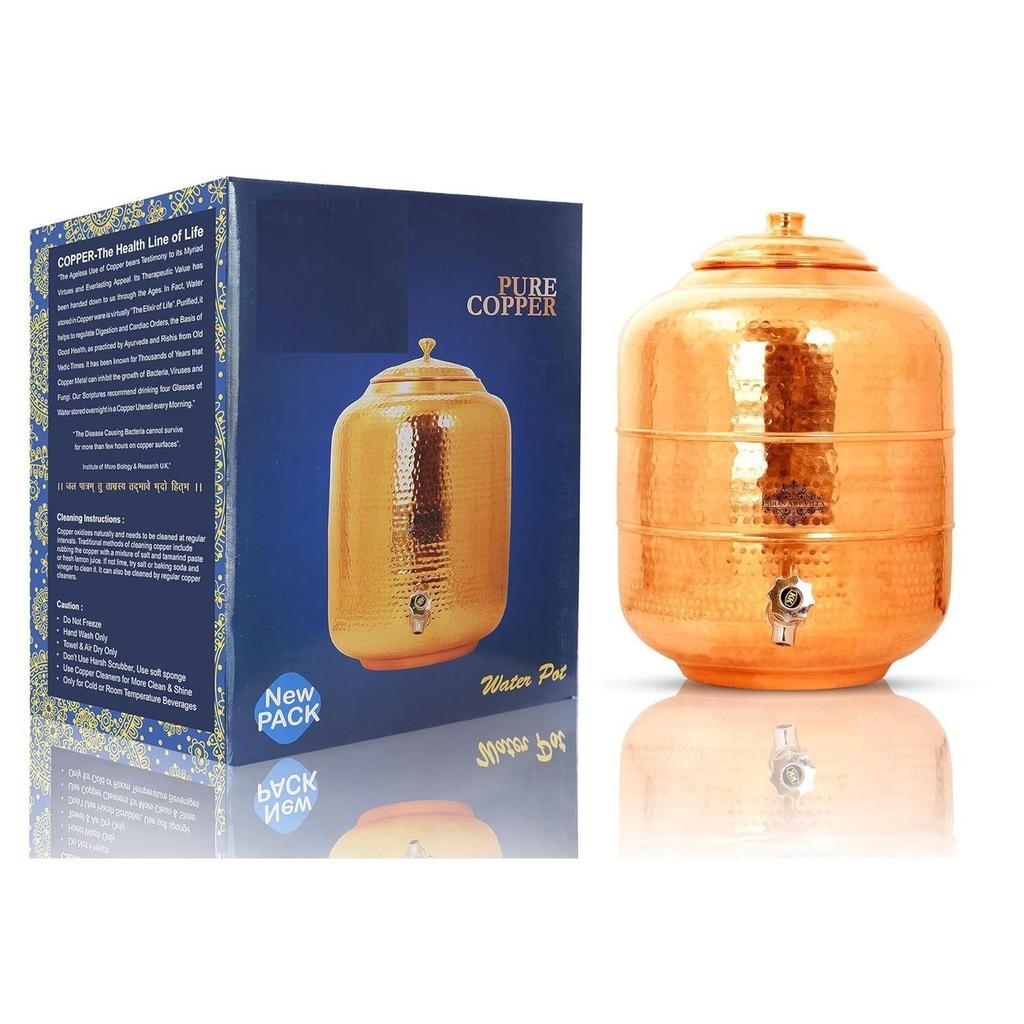 Czysty miedziany młotkowany projekt Dzbanek na wodę/dozownik/pojemnik/matka/zbiornik z mosiężnym kranem, do przechowywania i serwowania wody, korzyści zdrowotne, pojemność 7 litrów