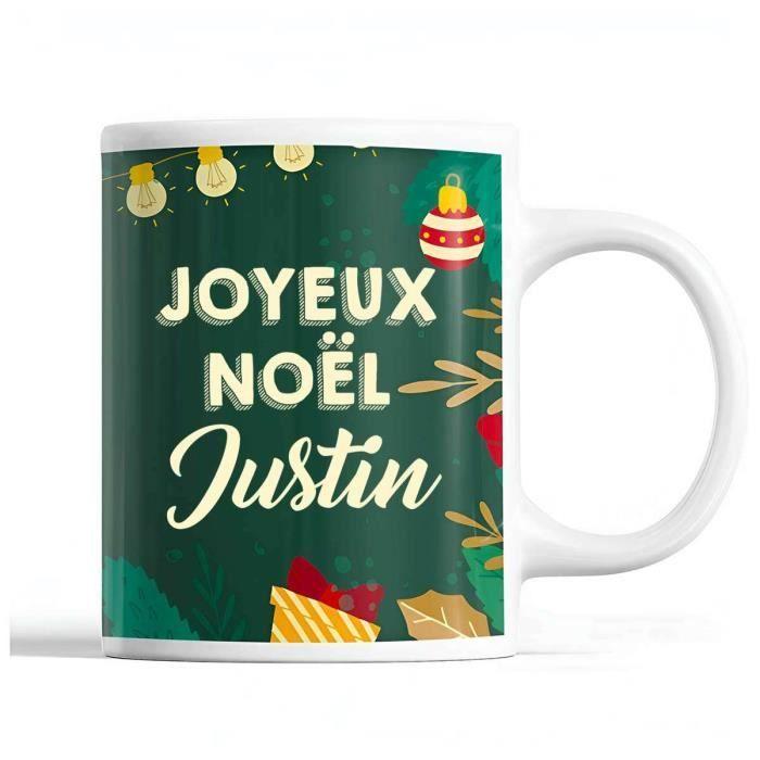 Mug - Noël Justin Vert - Céramique - 325 ml - Imprimé Recto/Verso - Idée Cadeau