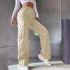 Large Pocket Casual Work Pants for Women Street High Waist Straight Wide-leg Casual Pants
