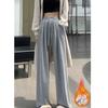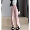 Spodnie z klejącej ryżu w stylu Hongkongu dla kobiet na wiosnę i jesień Nowe spodnie z wysokim stanem, wyszczuplające, luźne, z szerokimi nogawkami, wszechstronne