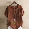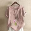 Damska Moda Koszulka z Krótkim Rękawem z Kwiatowym Nadrukiem Luźna Bawełniana Koszula Casualowa Luźna Bluzka Letnia Topy Plus Size