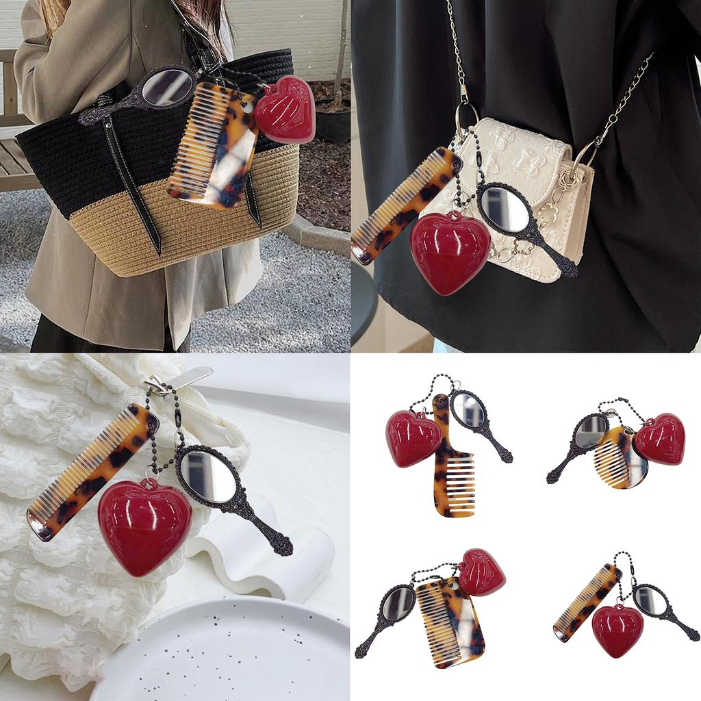 Fashionable Keyring Multifunctional Comb Heart Mirror Keychain for Stylish Hair Care Creative Key Ring Bag Pendant