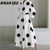 IHUASU Damska Moda Wiosna Jesień Sukienki Casual z Długim Rękawem z Kołnierzykiem POLO