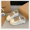 Modne sportowe buty casual na platformie damskie 2025 wiosna nowe wszechstronne okrągły nosek skórzane białe buty podwyższające damskie buty typu board