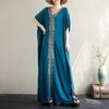 Kobiety Plus Size Vintage Haft V-neck Rękaw Nietoperz Sukienka Maxi Letnia Luźna Plażowa Boho Sukienki Wakacyjne
