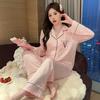 Women Sleepwear Sets Rest Summer Autumn Lace patchwork jacquard Pajamas Set Turn Down Collar Faux Silk Satin Short Sleeve Female Pijama Home Wear