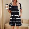 Damski Modny i Casualowy Kombinezon z Krótkim Rękawem, Plisowaną Kieszenią i Nadrukiem