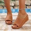 2025 summer new large size round head retro solid color cool slippers women's hollow sewn wedge heel large size women's shoes