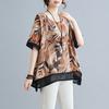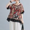 Cotton and Linen Large-size Women's Summer New Style Literary Print Loose Meat Cover Casual Versatile Round Neck Short-sleeved T-shirt Top