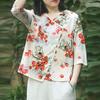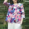 ZANZEA Kobiety Casualowy Dekolt V Rękaw 3/4 Luźna Bluzka z Nadrukiem