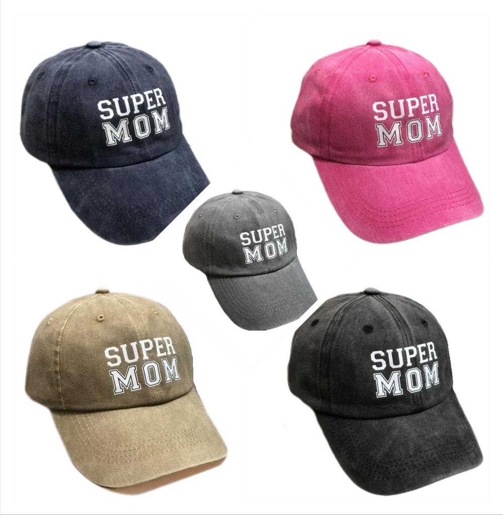 SUPER MOM Letter Embroidery Retro Washed Denim Baseball Cap For Women Mommy Sun Hat Hip Hop Snapback Cap Mother's Day Gift Visor