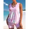 Damski strój kąpielowy dwuczęściowy z rozcięciem, strój kąpielowy z wysokim stanem