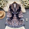 Sukienki wiosenne i jesienne damskie z dekoltem w serek, z długimi rękawami, w kwiaty, jednorzędowe, z wysokim stanem, vintage, przepiękna, imprezowa mini sukienka