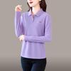 T-shirt damski z długim rękawem Cienki styl Matka Jesień Top z lodowego jedwabiu Kobiety w średnim wieku T-shirt z klapą Koszulka polo