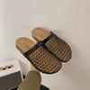 Niszowe tkane puste siateczkowe chłodne kapcie damskie buty do noszenia 2025 nowe letnie na płaskiej podeszwie oddychające sandały z zakrytą piętą