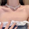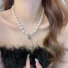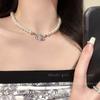 Elegancki naszyjnik z kokardą z pereł: Luksusowy łańcuszek obojczykowy ze stopu z niszowym wzorem
