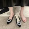 Baotou półkapcie wiosna i lato 2025 wersja koreańska modne i wygodne nowe szpiczaste cyrkonie gruby obcas leniwe sandały
