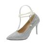 Srebrne wysokie obcasy damskie 2024 wiosna i jesień nowe lekkie szpilki piękny perłowy łańcuszek słowo z butami ślubnymi pojedyncze buty damskie