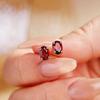Eleganckie kolczyki z granatami w kolorze gołębiej krwi, ze srebra platerowanego różowym złotem i akcentami z cyrkonii