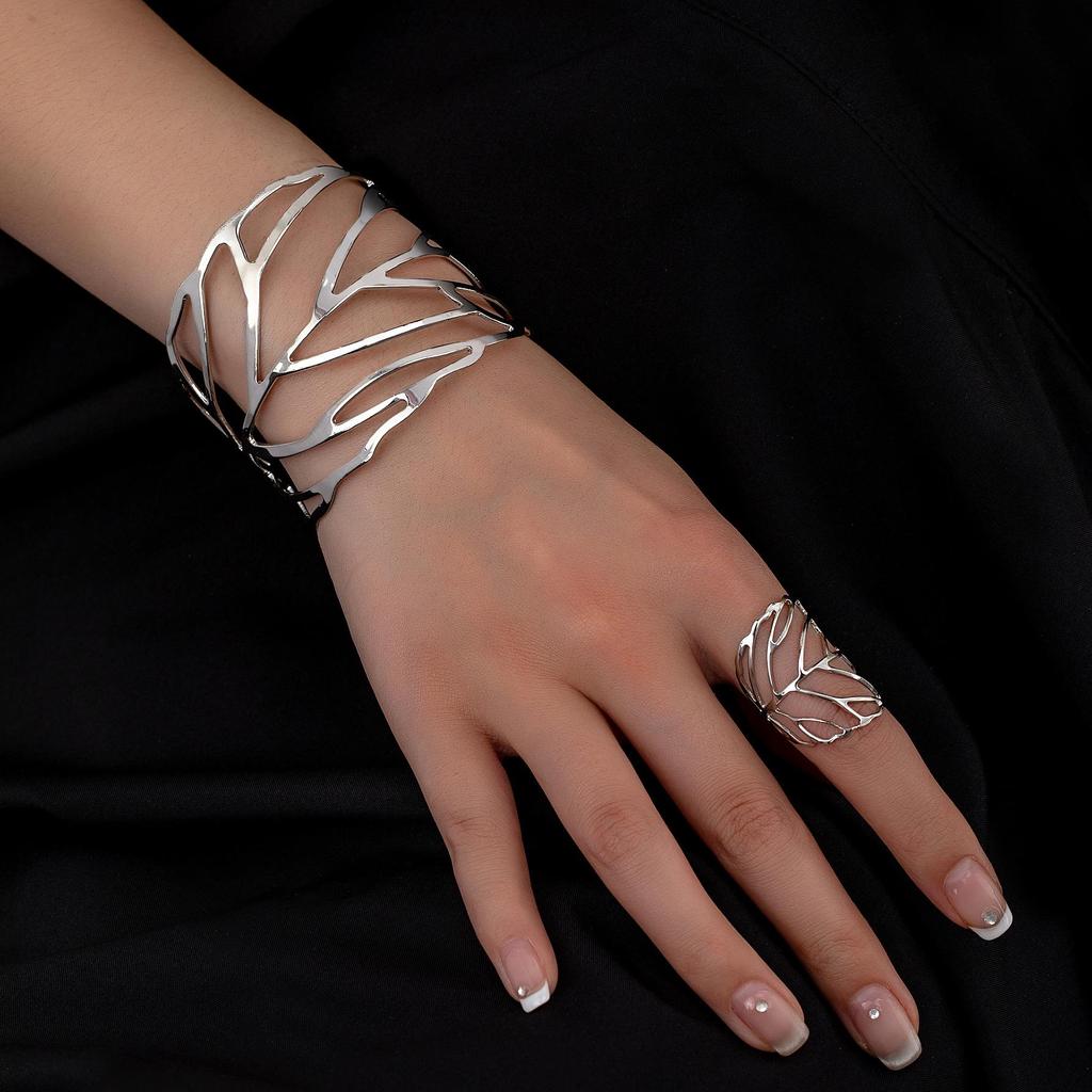 Przesadny Europejski i Amerykański Liść Otwarty Srebrny Zestaw Bransoletek: Wydrążony wzór na bankiet lub do noszenia na co dzień