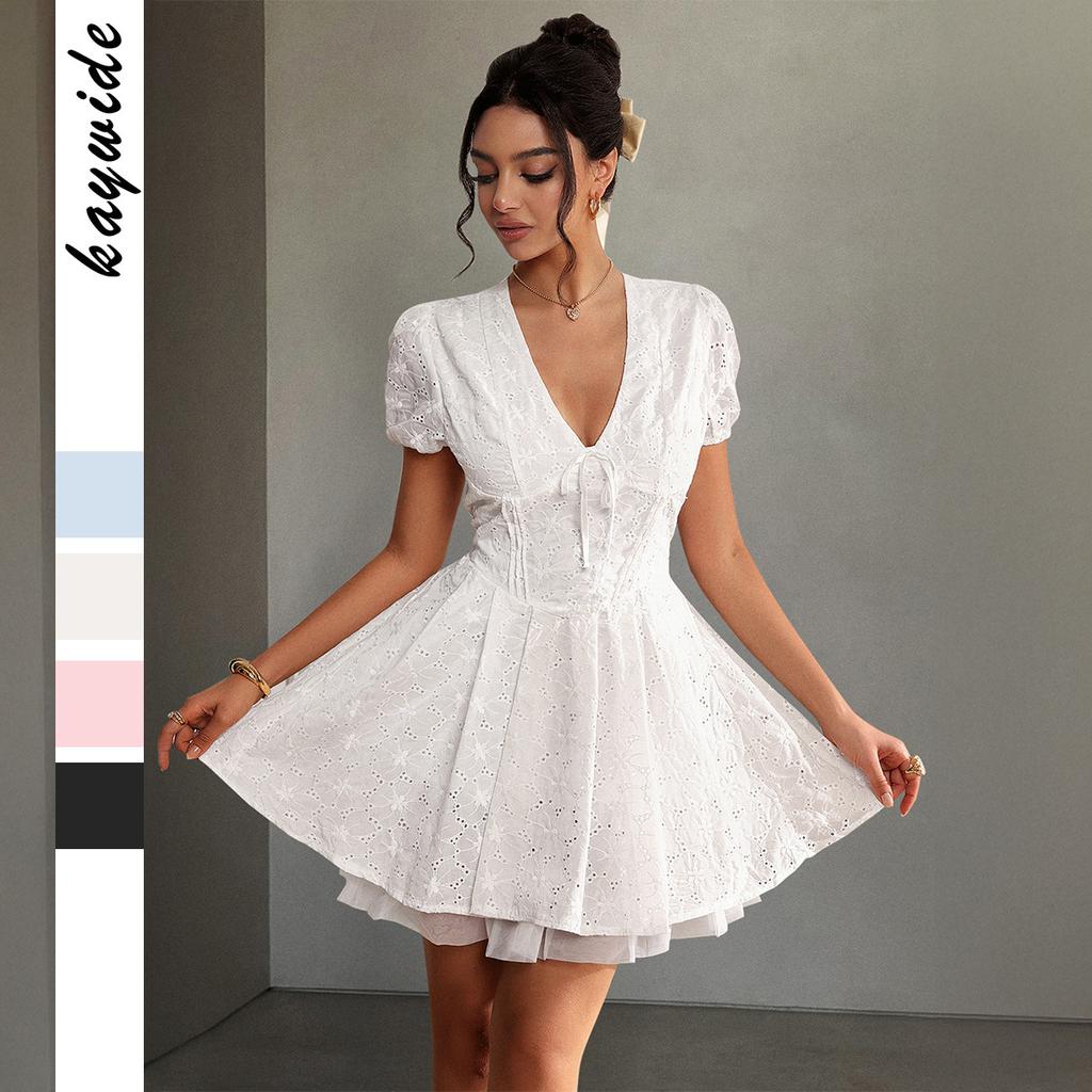 Francuski Elegancki Styl Sukienka z Głębokim Dekoltem V dla Kobiet na Wiosnę i Lato