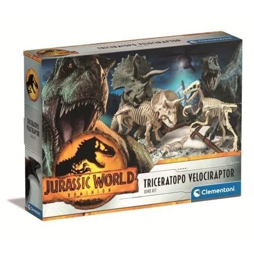 Jeu d'excavation - clementoni - jurassic world 3 - tricératops et velociraptor - pour enfants à partir de 6 ans
