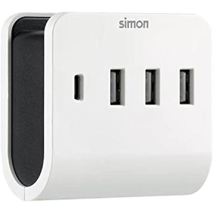 Adaptateur usb - simon - chargeur multiple - 4 ports usb (3 a + 1 c) - 4,8 a - compact