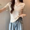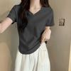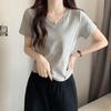 V-neck Short-sleeved Front Shoulder Slimming Fish Bone Irregular Base Top T-shirt for Women Spring and Summer New Short-sleeved Shirt