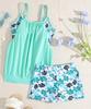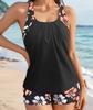 Damskie Stroje Kąpielowe Wzory Kontrastujące Szorty z Szelkami Split Bikini Strój Kąpielowy Odzież Plażowa Stroje Kąpielowe