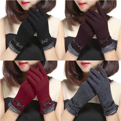 Nowe Damskie Utrzymujące Ciepło Dotykowe Plus Aksamit Wewnątrz Pogrubione Wiatroodporne Rękawiczki Rowerowe Śliczne Urocze Kokardki Elegancka Elastyczność Miękkie