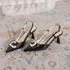 Black Women Slingback Sandals High Heel Small Big size 33 47